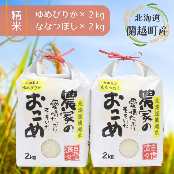 蘭越町産"ゆめぴりか"と"ななつぼし"食べ比べセット4㎏/長田農産/蘭越町
