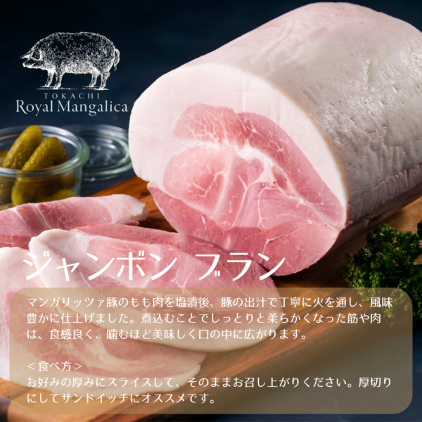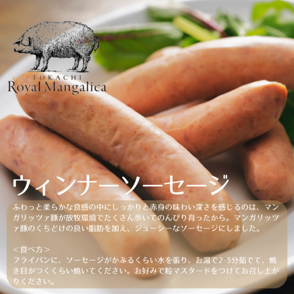 十勝マンガリッツァ豚は、一般的な豚肉に比べて発色が強く、霜降り率の高い赤身の濃厚でジューシーな味わいと、融点が低く、口の中に入れた瞬間にとろけるようなヘルシーな脂の芳醇な旨味を味わうことができます。今回は当店オリジナルギフトとして、ウィンナーソーセージ、ビアシンケン、スモークベーコン、ジャンボンブラン、ソプレザータ、リエットの6点セットでご用意しました。ぜひ一度ご賞味ください。