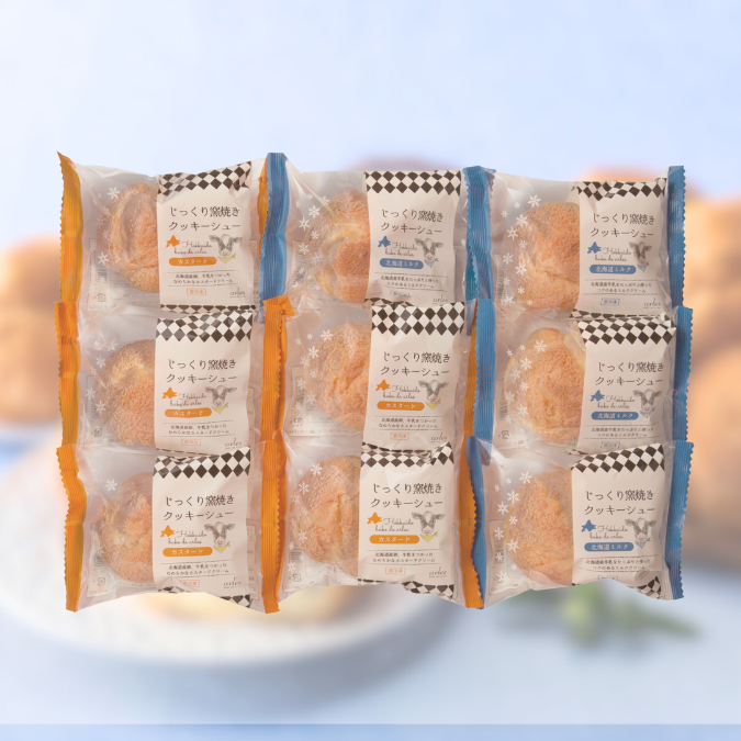 なめらかなカスタードクリームとコクのあるミルククリームのクッキーシューのセットです。じっくりと窯焼きで仕上げた2種類の味わいをお楽しくください。