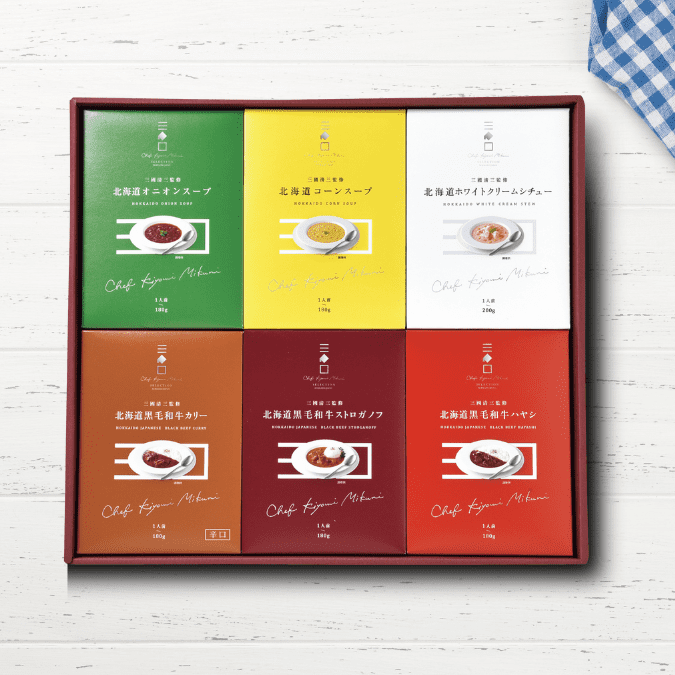 | 容量・規格 | ・三國監修北海道黒毛和牛カリー/180g ・三國監修北海道黒毛和牛ストロガノフ/180g ・三國監修北海道黒毛和牛ハヤシ/180g ・三國監修北海道コーンスープ/180g ・三國監修北海道オニオンスープ/180g ・三國監修北海道ホワイトクリームシチュー/200g |