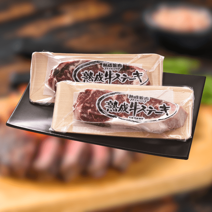 熟成牛は長期間熟成することで、くさみが軽減され、肉本来の風味が醸成・旨味も凝縮したしっとり柔らかい肉質が特徴です。