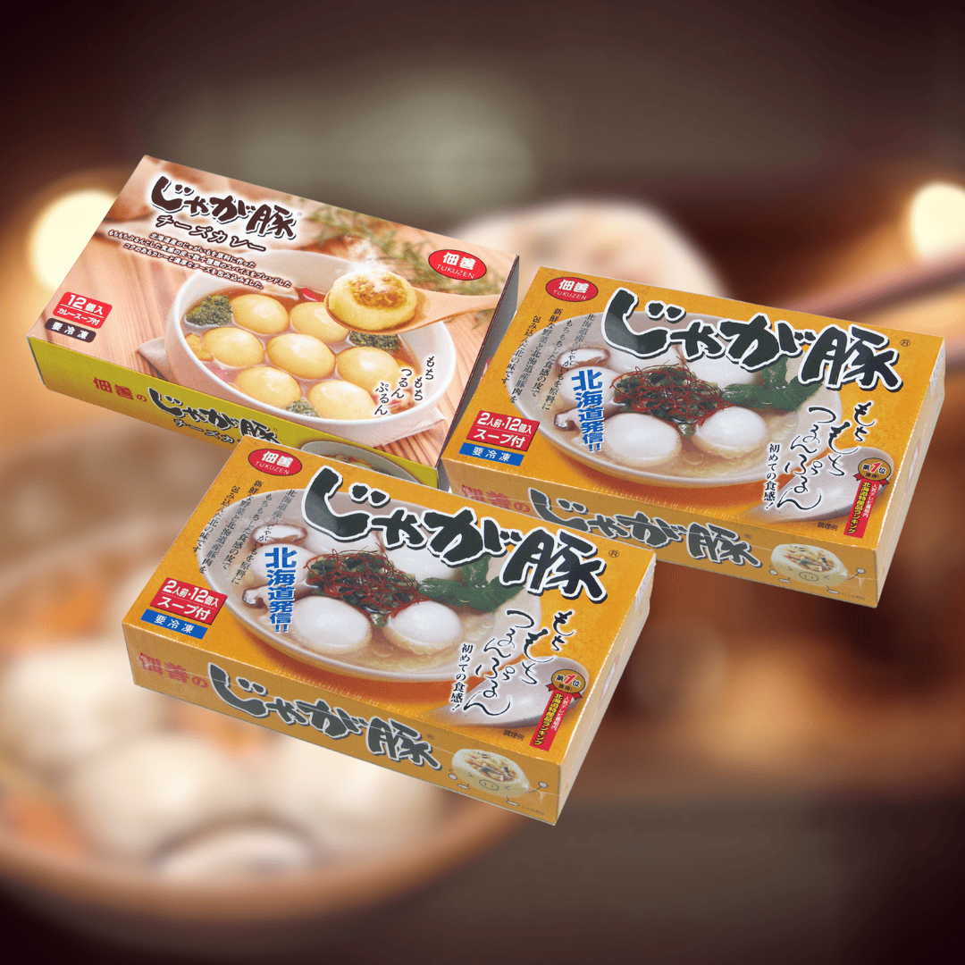北海道産じゃがいものモチモチした皮に、新鮮野菜&豚肉で作られた餡を包んだ逸品。うま味に加え、変化する食感の楽しさ、プルンとした喉ごしで、出荷数3億個突破の人気商品です。