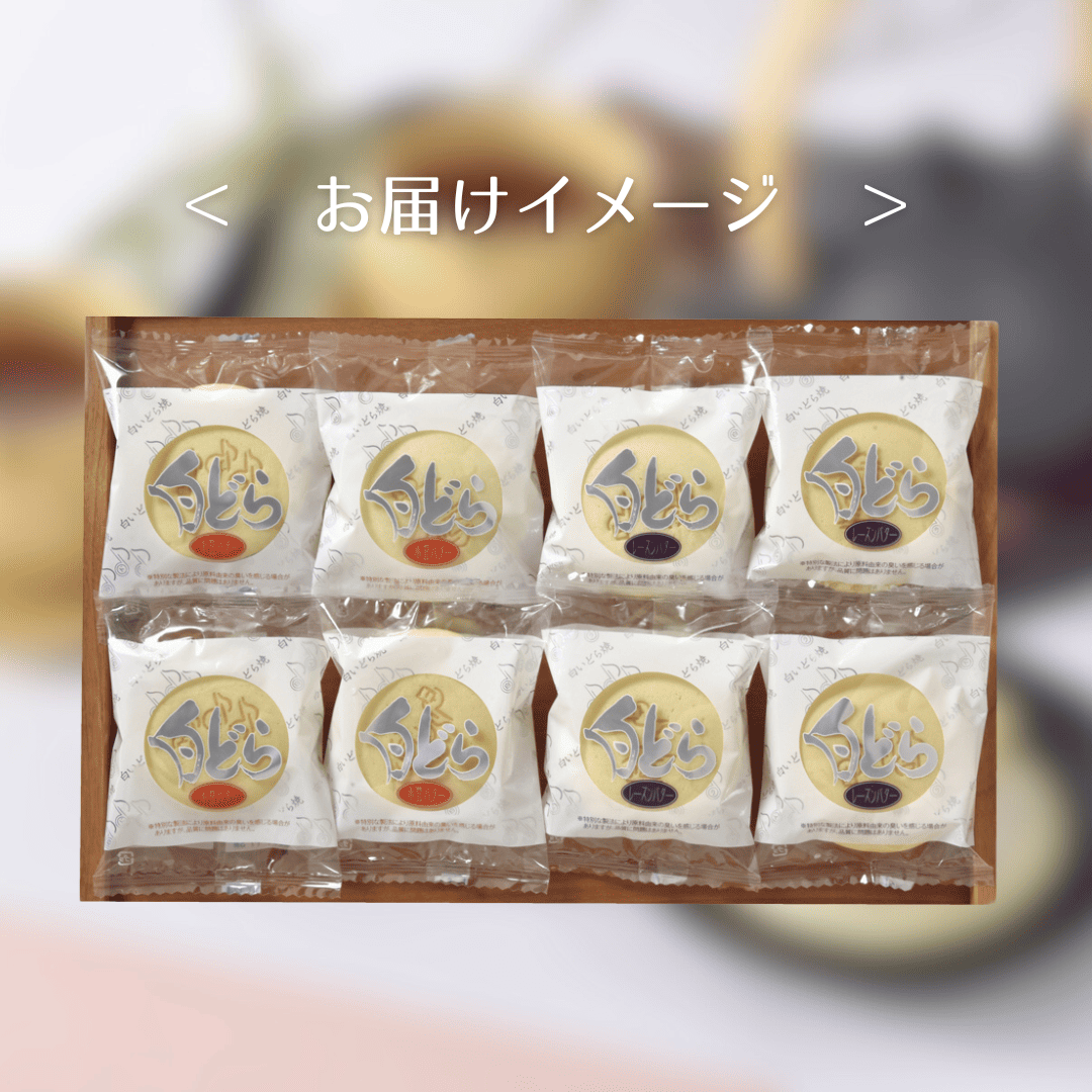 手焼きで焼いた珍しい白い皮のどら焼き「白どら」の2種類を楽しめるセットです。北海道産の小麦、バター、砂糖にこだわって作りました。
